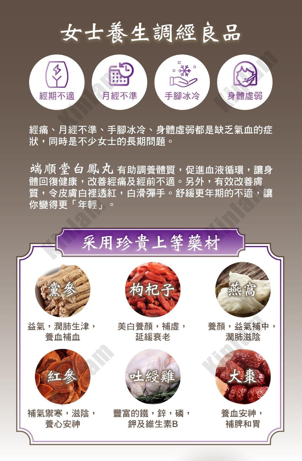 適應症:滋陰、養顏。其成份對現代婦女亞健康人士,有紓緩及改善效果。