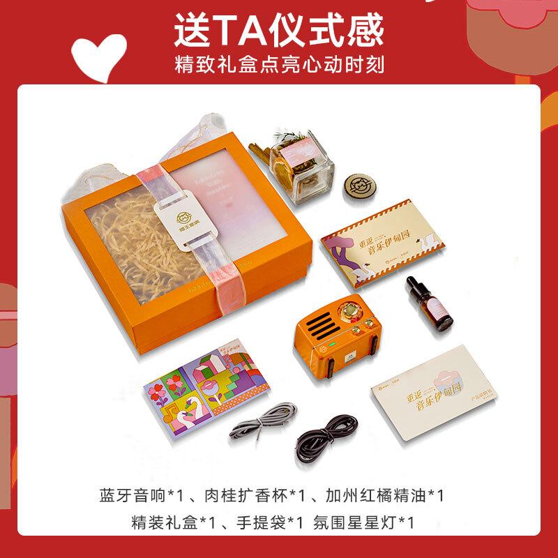 包裝及配件:禮盒*1、手提袋*1、肉桂擴香杯*1、香氛精油*1、明信片*1、卡套*1,Type-C線*1、AUX音頻線*1、說明書*1、貼紙*1