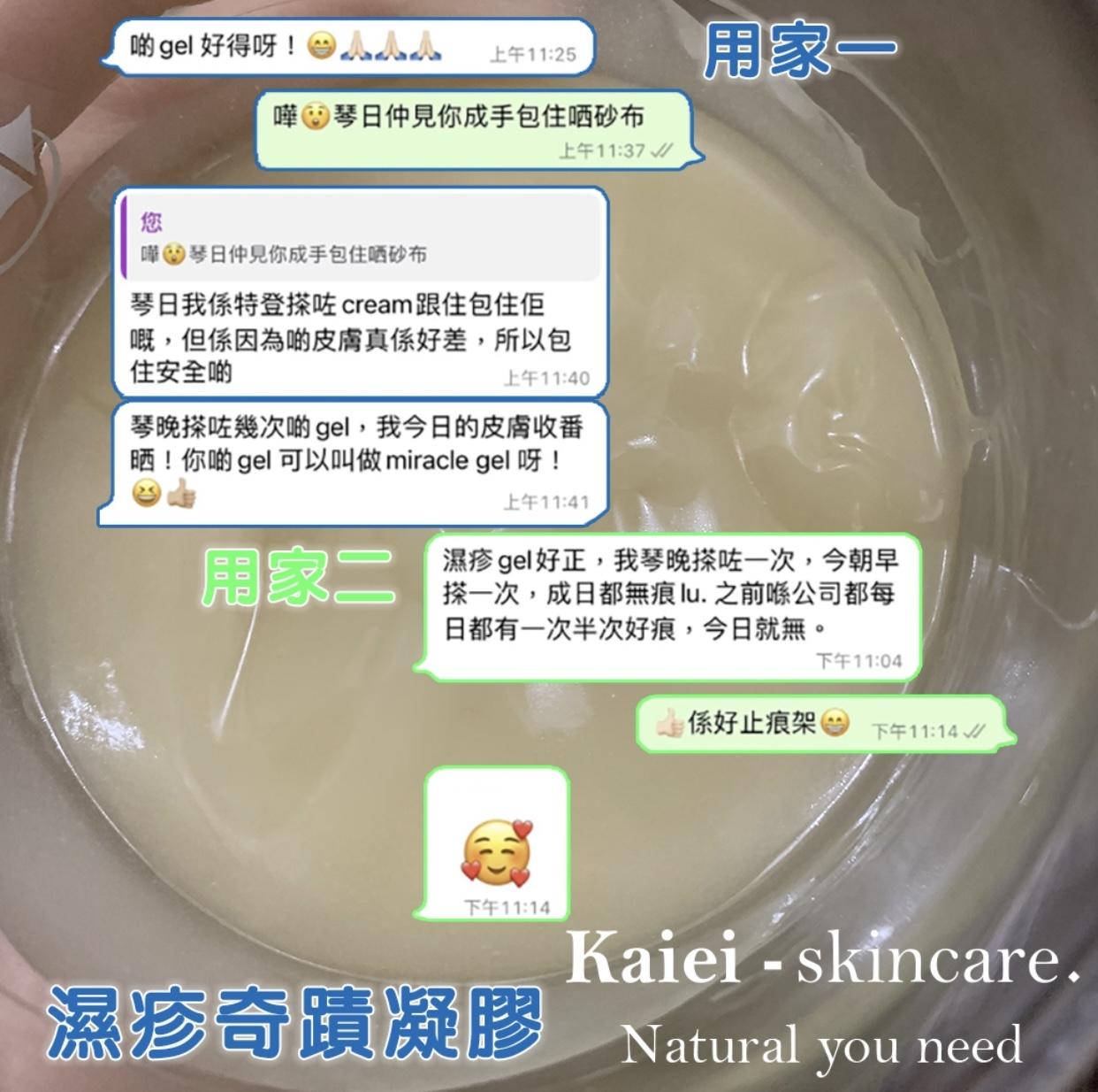可快速地止痕,同時有退紅和修復皮膚的功效。 為乾燥受損皮膚補充水分,有助修口癒合。 如果受濕疹困擾而睡眠不足,濕疹奇蹟凝膠能使你安睡 保存期6個月,存放於陰涼乾爽處 開封後請於2個月內使用完畢