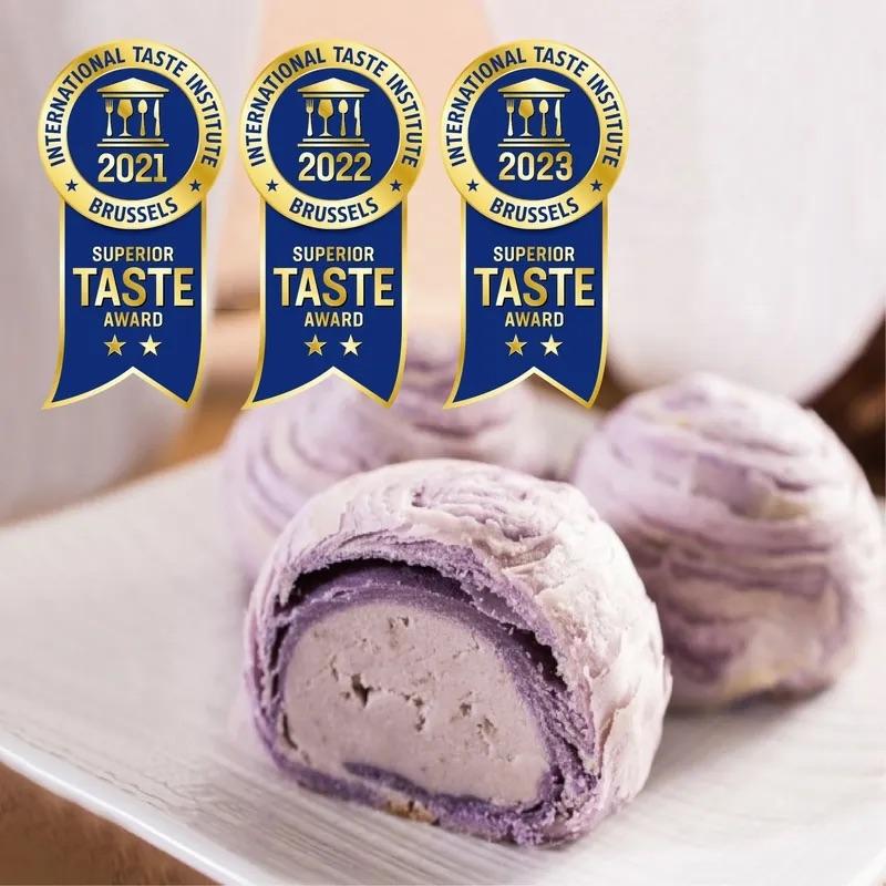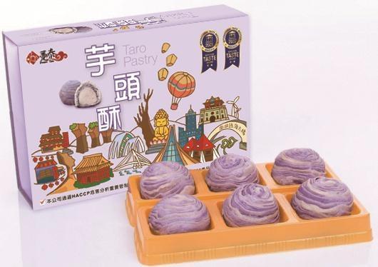 躉泰最推薦產品,台中大甲名產嚴選新鮮的芋頭製作,用料上乘,味道香甜手工麻糬,Q嫩綿香,增加紫晶酥口感層次層層酥皮表面,賣相吸引,外脆內軟