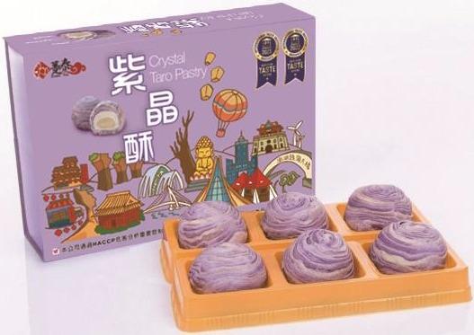 採用大甲在地檳榔心芋頭&濁水溪糯米製成的Q彈麻糬 一口咬下感受芋頭餡與麻糬的綿密口感躉泰最推薦產品,台中大甲名產嚴選新鮮的芋頭製作,用料上乘,味道香甜手工麻糬,Q嫩綿香,增加紫晶酥口感層次層層酥皮表面,賣相吸引,外脆內軟