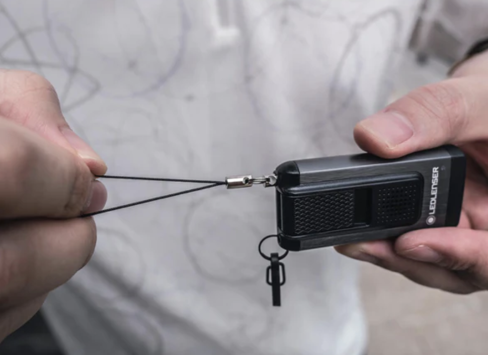 - 拉出尾部挂绳即发出警报声响和闪光,握回即可关闭