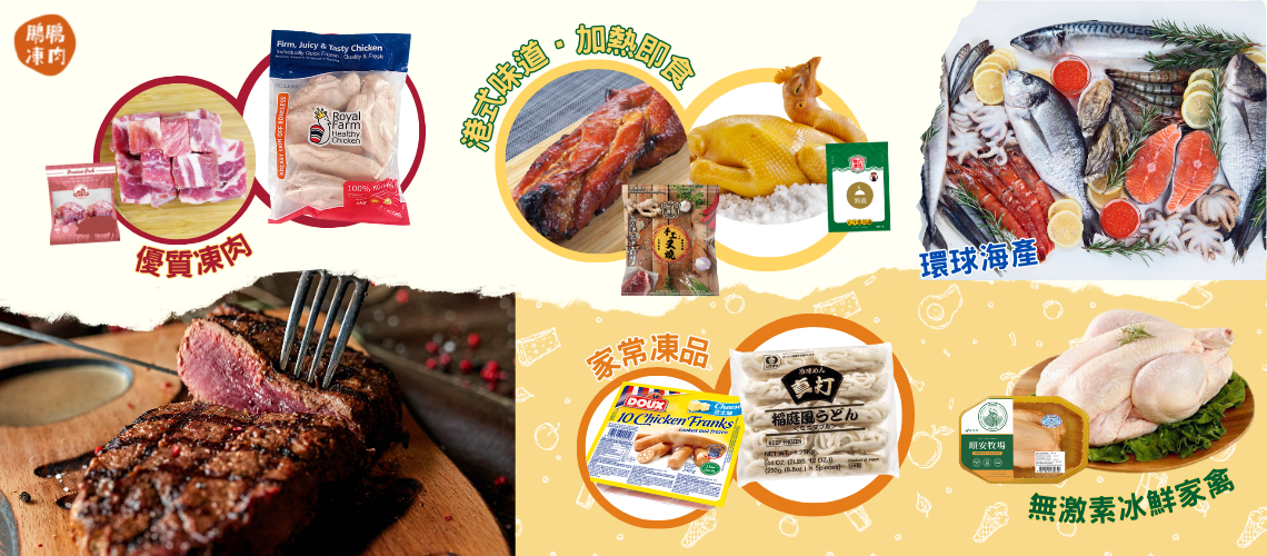 鵬鵬凍肉自設急凍食品加工及冷凍倉庫,多年來提供服務予各大連鎖餐飲食肆,為業界提供一手貨源。因此,能提供直銷的價格予消費者,令客人可用更優惠的價錢買到最優質的貨品。為達到方便、衛生的食品要求,所有鵬鵬凍肉自家品牌的產品都在合資格工場經過密封包裝,避免因二次接觸而引致交叉感染。不論是中產或基層市民都可以隨時享用衛生、安全、價格合理的優質食材。